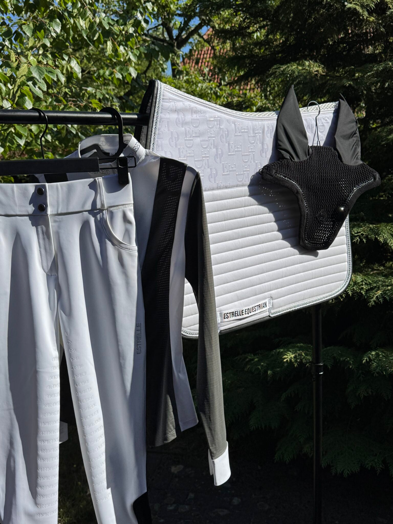 Die Estrelle Crystal Chain Reithose bietet eine perfekte Kombination aus elegantem Design und technischer Performance. Ihr atmungsaktiver, schmutz- und wasserabweisender 4-Wege-Stretch-Stoff garantiert optimale Bewegungsfreiheit und besten Tragekomfort. Das nahtlose Polyester-Strickbündchen am Fußende sorgt für angenehme Passform ohne Druckstellen. Der innovative Silikon-Grip in modernem Muster unterstützt sicheren Halt im Sattel, während edle Kristall-Applikationen an Hüfte und Oberschenkel für stilvolle Akzente sorgen. Optimal für höchste Ansprüche im Reitsport.