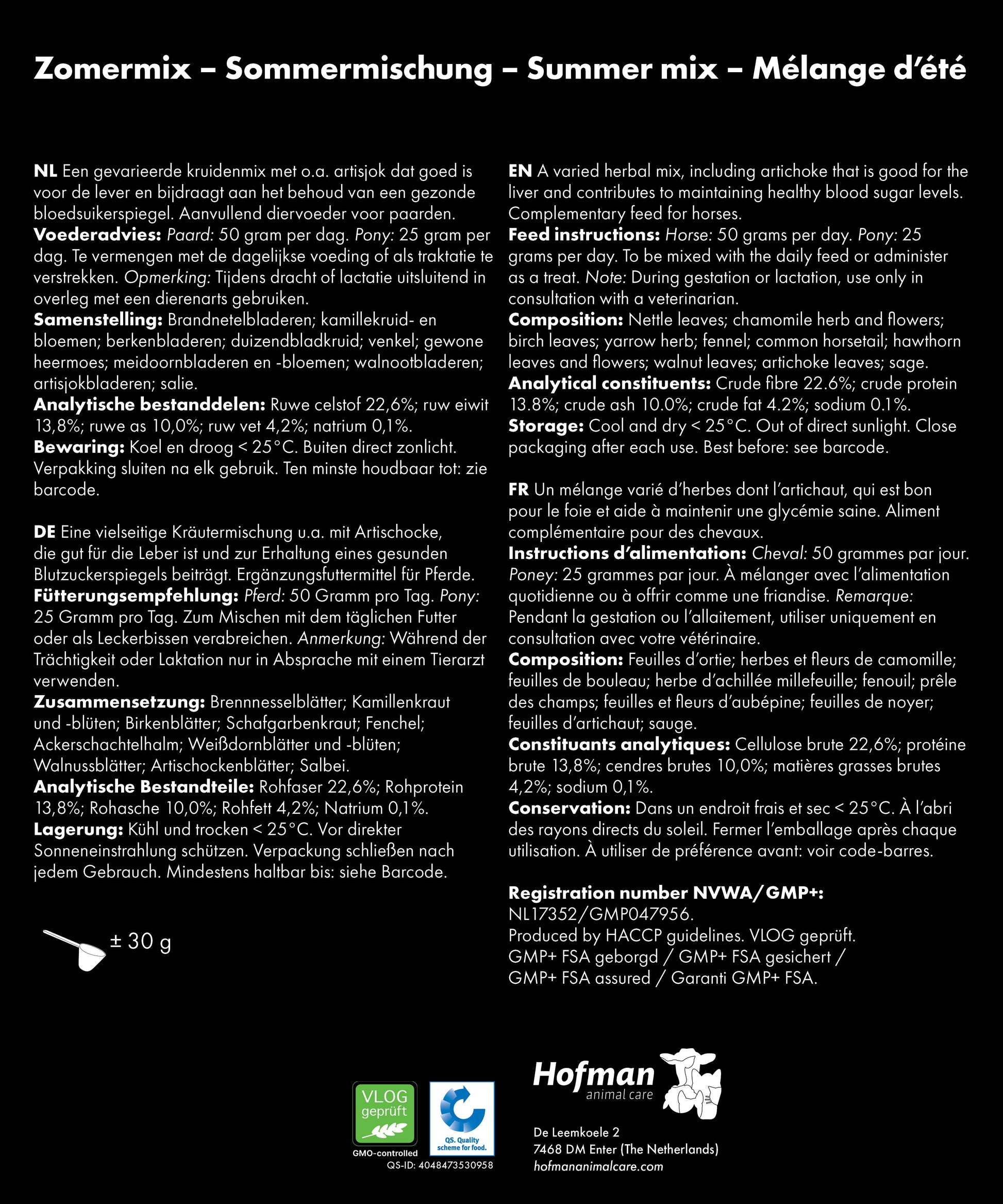 Herbs Sommermischung enthält eine Kombination aus Brennnesselblättern, Kamillenkraut und -blüten, Birkenblättern, Schafgarbenkraut, Fenchel, Ackerschachtelhalm, Weißdornblättern und -blüten, Walnussblättern, Artischockenblättern und Salbei. Fenchel, Schafgarbe, Kamille, Artischockenblätter und Salbei unterstützen die Verdauung. Kamille und Salbei wirken entspannend, Fenchel und Salbei regen den Appetit an. Birkenblätter reinigen den Körper, Weißdornblätter mit Blüten sind gut für den Blutkreislauf und Artischockenblätter sind gut für die Leber und tragen zur Aufrechterhaltung eines gesunden Blutzuckerspiegels bei.