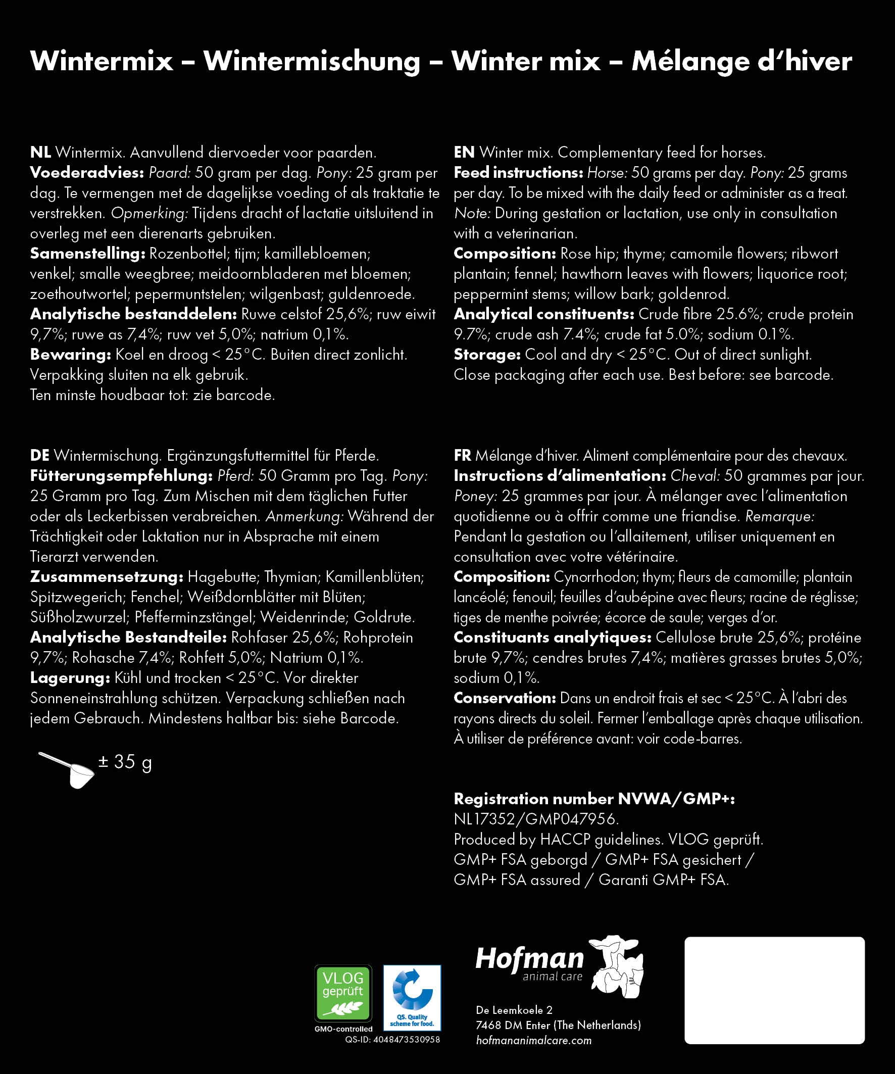Excellent Horse Herbs Winter Mix ist ein Ergänzungsfuttermittel für Pferde. Es unterstützt in der kalten und nassen Jahreszeit