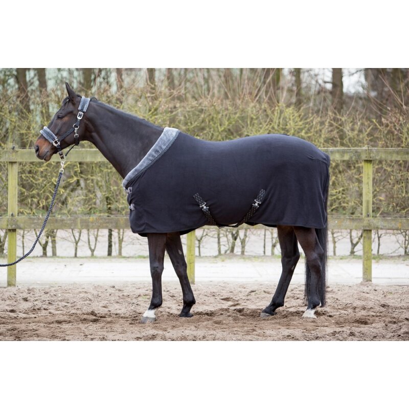 Die Abschwitzdecke "Furby" im Set bietet durch ihr hochwertiges Fleece-Material optimalen Feuchtigkeitstransport von innen nach außen und sorgt für ein schnelles, schonendes Trocknen des Pferdes. Der breite Kragen, das weiche Polster am Widerrist sowie die doppelte Brustverschnallung und der Kreuzgurtverschluss garantieren sicheren Halt und hohen Tragekomfort. Ergänzt wird das Set durch ein strapazierfähiges, weich unterlegtes Nylonhalfter in passender Farbe sowie einen robusten Strick mit Karabiner – ideal abgestimmt für einen professionellen und stilvollen Auftritt.