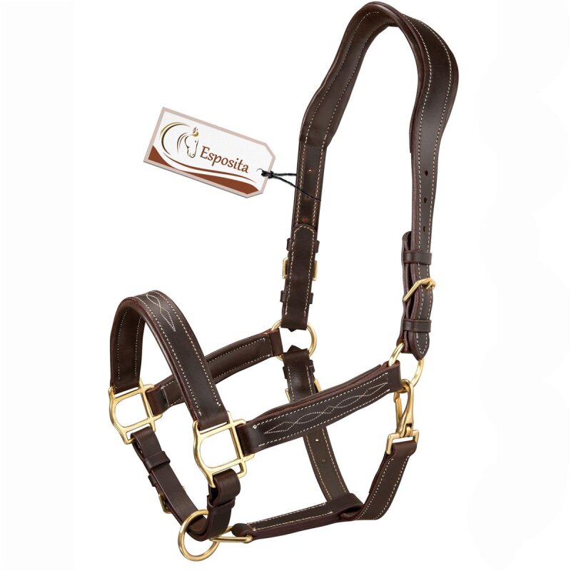 Dieses anatomische Lederhalfter „Deluxe“ von Esposita besticht durch hochwertiges, weiches Leder und ein speziell geformtes Genickstück, das Druckstellen zuverlässig verhindert. Die individuell anpassbaren Riemen am Genick, Kehlriemen und Nasenriemen sorgen für optimale Passform und Komfort. Feine Stickereien verleihen dem Halfter eine elegante, luxuriöse Optik, die Ihr Pferd stilvoll hervorhebt. Rostfreie Messingbeschläge garantieren Langlebigkeit und Stabilität – ein erstklassiges Zubehör für anspruchsvolle Pferdeliebhaber.