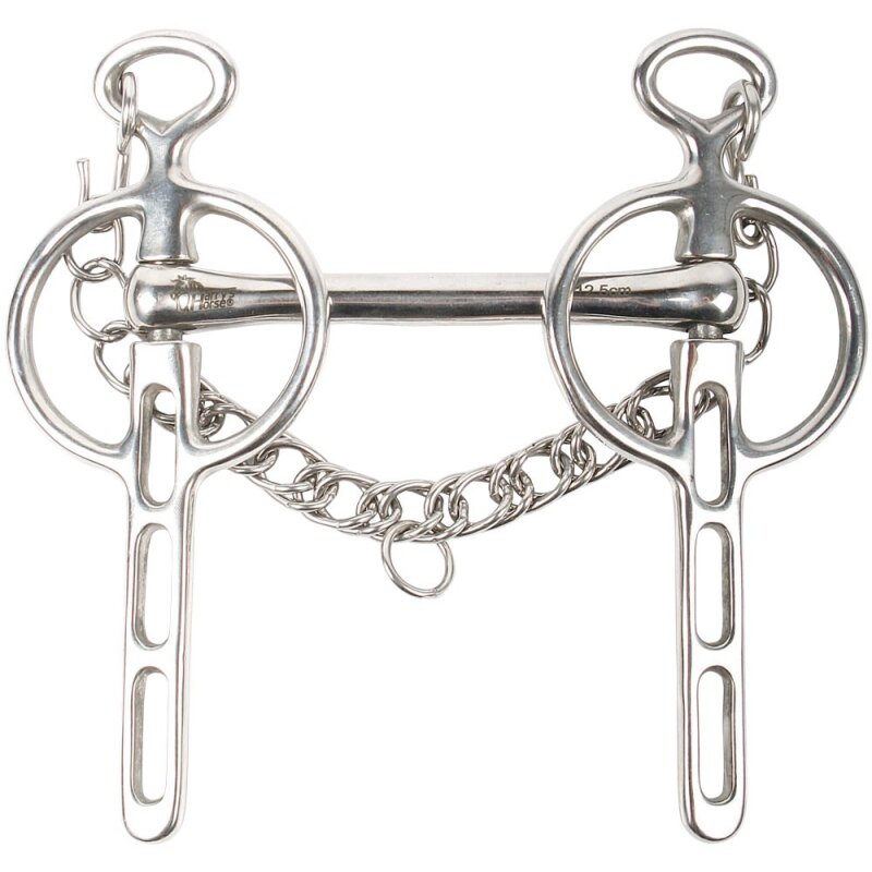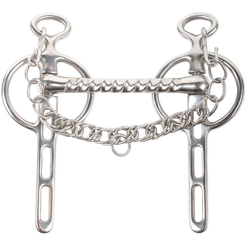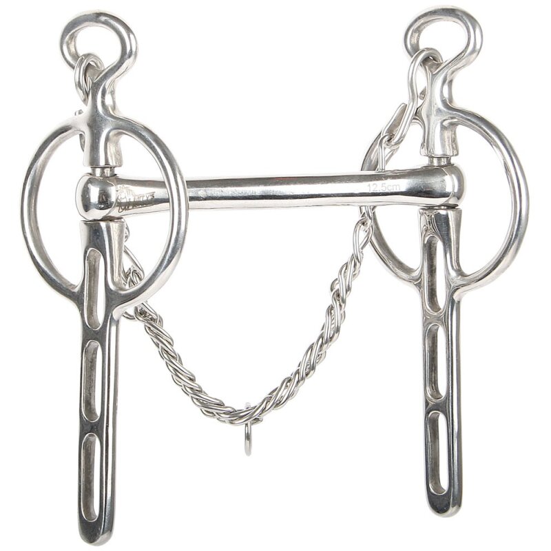 Das geriffelte Mundstück sorgt für gezielte Einwirkung und klare Kommunikation zwischen Reiterhand und Pferdemaul – besonders im Fahrsport bewährt. Durch die beweglichen Seitenteile bietet die Kandare eine feine Hilfengebung bei gleichzeitig kontrollierter Wirkung.
